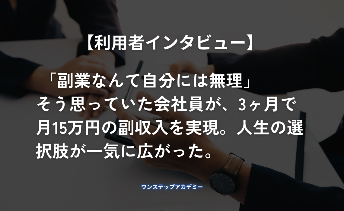 今では、営業の仕事で培った経験とワンステップアカデミーで学んだスキルを掛け合わせて、さらに収入を伸ばせる手応えを感じているそうです。