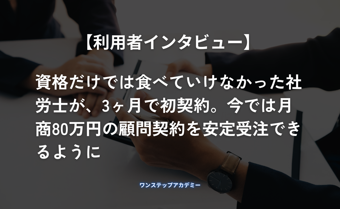 「報酬は15万円。めちゃくちゃ嬉しかったですね。そこから『発信→問い合わせ→商談→契約』の流れができて、半年後には月3〜4件のペースで顧問契約が取れるように。今は月商80万円で安定してます」